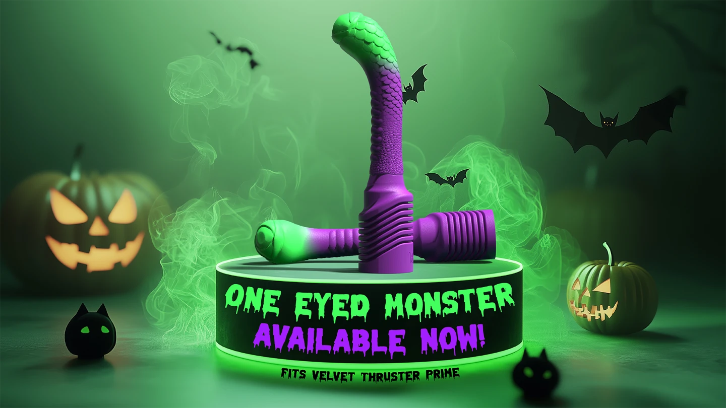 The Velvet Thruster Prime is a thrusting dildo you can customize here, mix-and-match shapes, sizes, colors, and accessories. You can change tops or add accessories easily during play. Additional heads are available for purchase when you click Buy Now.